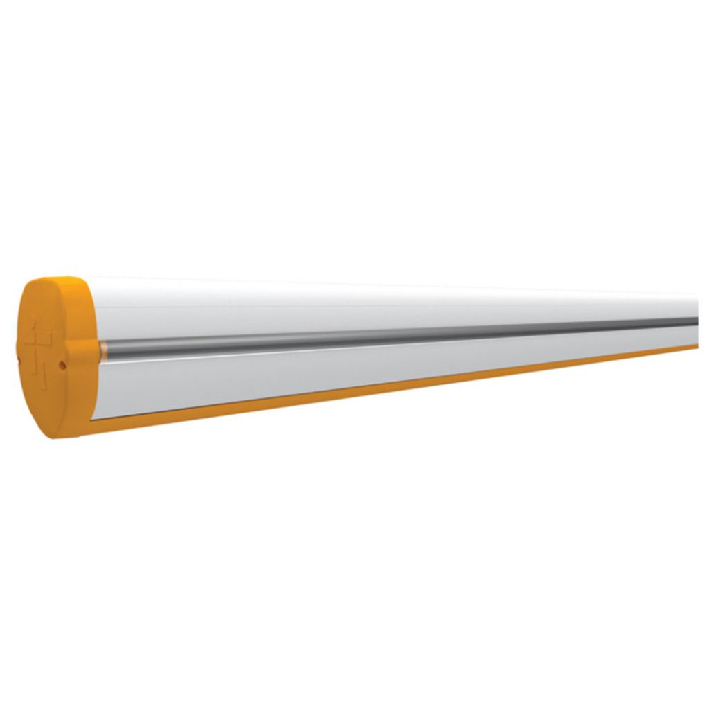 Braț din aluminiu vopsit alb, 130 x 85 mm, cu armătură internă, bandă de acoperire a canelurilor și profil din cauciuc rezistent la șocuri. Lungime: 4340 mm.