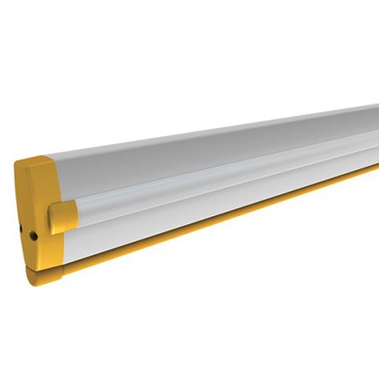 Braț din aluminiu vopsit alb, 90 x 35 mm, cu bandă de acoperire a canelurilor și profil din cauciuc rezistent la șocuri. Lungime: 4050 mm.