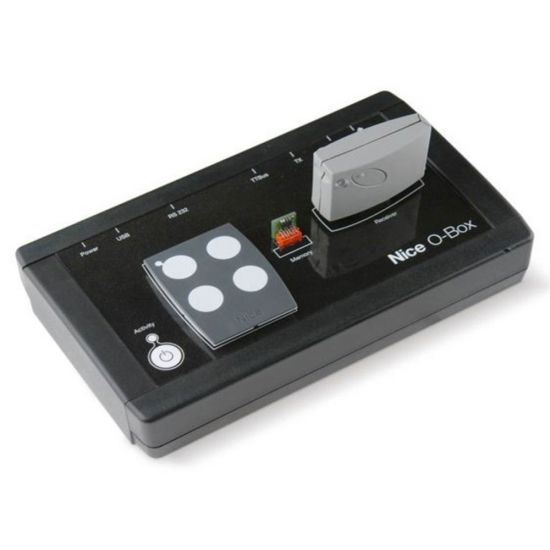 - O-Box este interfata revolutionara de conectare care, datorita softului dedicat O-Box Software Suite, permite configurarea si programarea direct de pe PC sau PDA, in mod simplu si intuitiv, a transmitatoarelor, receptoarelor si a altor dispozitive de comanda Nice.
